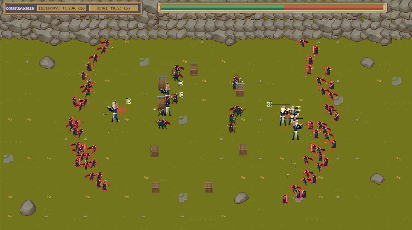 The last game I got to try was very much like Ultimate Epic Battle Simulator in that you had a bunch of units that you needed to place to beat another set of units in front of you. Whether that was knights, attack dogs, archers, snipers, etc. However in this game you had to make choices via paths. Every unit had a "weight" and every battle had a weight limit and so you had to consider which of your units you used for what battles to make best use of the weight limits. You choose what path to go down to get upgrades, materials and new units before facing off against the next army. It had a cute 2D pixel art style for how violent it was.
